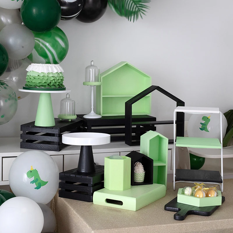 Addition Information of Green & Black Wood Storage Racks Dinosaur Series Decorating Dessert Stands Trays Cake Table Baby Shower Party Suppliers